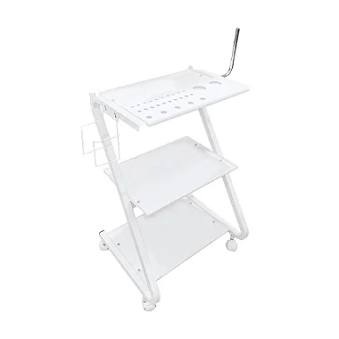3 Andares e 5 suportes funcionais: Este carrinho destaca-se com versatilidade, com 3 andares e 5 suportes funcionais para papel toalha, luva, batoque, copo e luminária LED. Esses recursos tornam a organização de instrumentos e materiais de trabalho mais prática e eficiente.