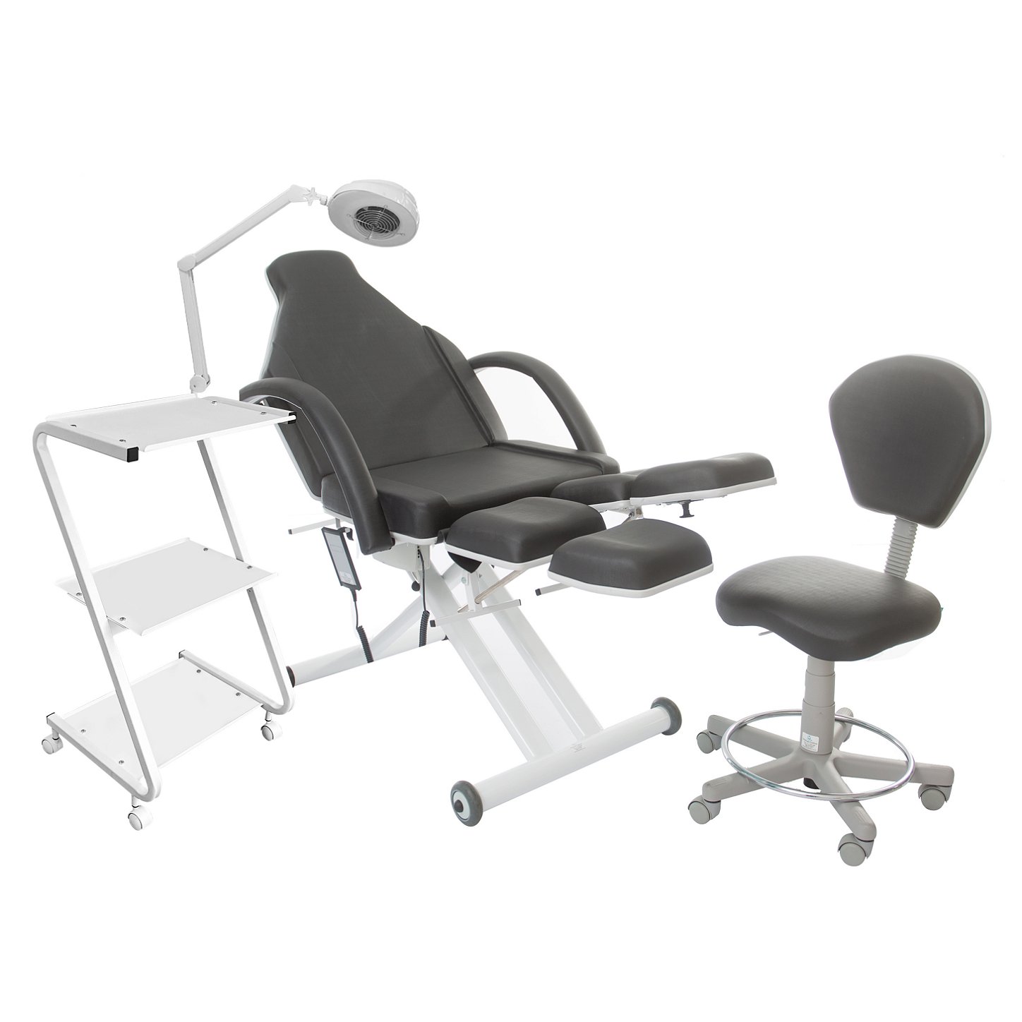 KIT com Maca poltrona semi-elétrica para podologia PP 17: Modernidade, funcionalidade e estabilidade