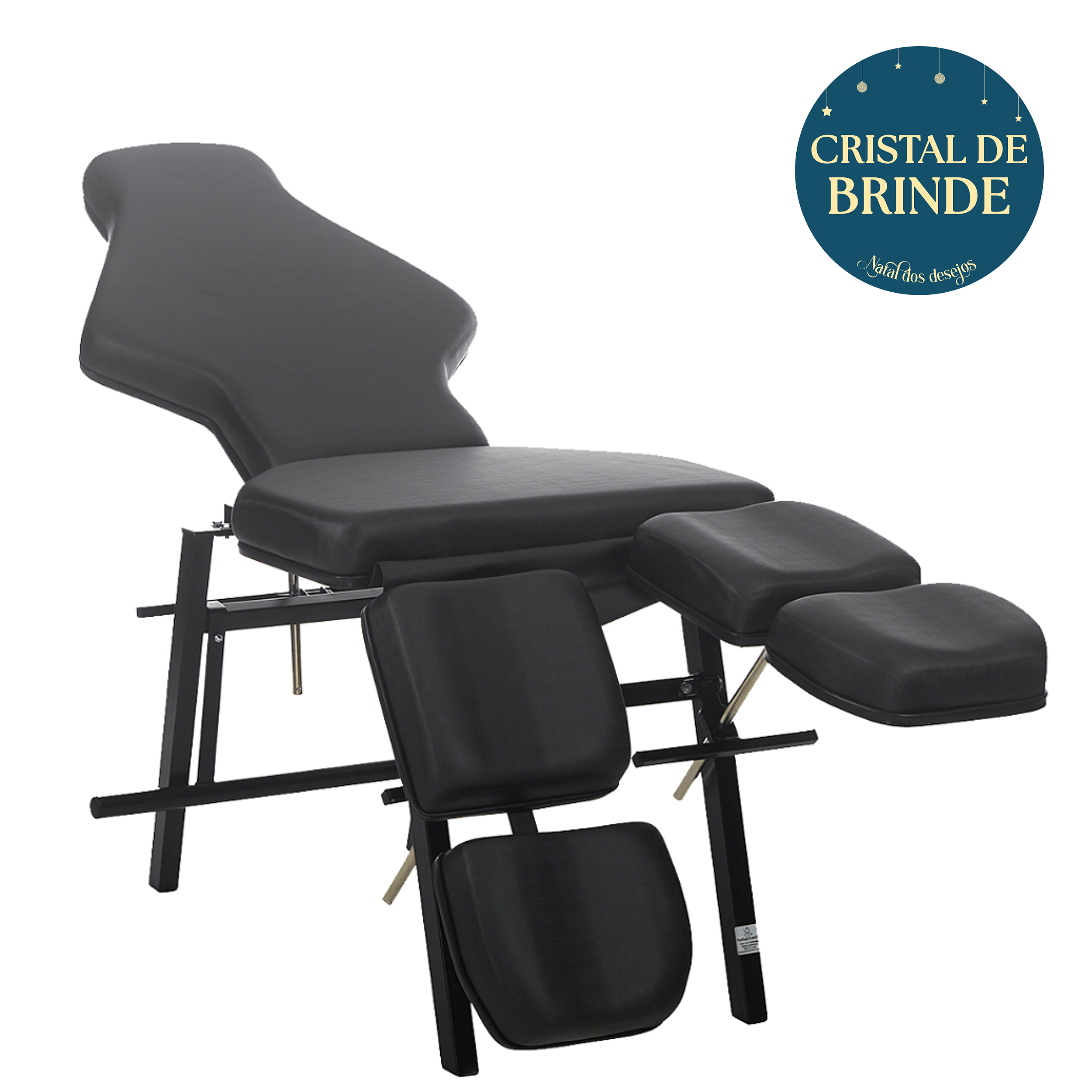 Sua cabeceira com formato anatômico é ideal para procedimentos onde há necessidade do cliente ficar de costas, permitindo encaixe das pernas, as perneiras são bipartidas com posição ajustável.